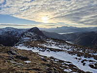 Oppe på ryggen var det flott utsikt nordover og sola kom til syne. Hærleg med denne sola.