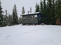 Formiddagstur til Prestkjerringa i dag. Var litt spent på kjøreforholdene på Nyseterveien, men det var bart i hjulsporene, så det gikk greit. Møtte en traktor med grushenger, og måtte rygge flere hundre meter på vei hjem. Tung tur i dag, med en del snø i råket. Så ingen andre i dag, verken turgåere eller jegere, men mye arbeid i Forsetseterlia, både med lysregulering og manuell dirigering, så forhåpentligvis blir det bedre vei her i løpet av høsten. Fint turvær, men ganske kald vind på toppene.