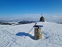 Stinn skodde på Nygaard, men yr.no spådde sol både her og på fjellet. Tenkte derfor å ta skitur på Vestfjellet. Da jeg passerte Astridbekken, hvor parkeringsplassen ikke har vært brøytet på lang tid, og derfor vondt å kjøre inn, var det fortsatt stinn skodde. Men etter å ha passert innkjørselen til Nysetra så jeg sola gjennom skodda, og da jeg parkerte på Værskei var det strålende sol. Den fulgte meg på hele turen, bortsett fra litt før og etter Mjogsjøosen. Brukte zero-ski, noe glatt til å begynne med, men fra stigningen mot Prestkjerringa fungerte de fint. Hadde fjellet for meg selv i dag.