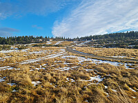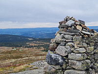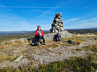 Formiddagstur til Prestkjerringa i dag. Var litt spent på kjøreforholdene på Nyseterveien, men det var bart i hjulsporene, så det gikk greit. Møtte en traktor med grushenger, og måtte rygge flere hundre meter på vei hjem. Tung tur i dag, med en del snø i råket. Så ingen andre i dag, verken turgåere eller jegere, men mye arbeid i Forsetseterlia, både med lysregulering og manuell dirigering, så forhåpentligvis blir det bedre vei her i løpet av høsten. Fint turvær, men ganske kald vind på toppene.
