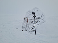 Yr.no spåddestrålende vær, med sol fra skyfri himmel, så i troen på dette fant jeg fram fjellskoene for å brøyte meg til Prestkjerringa. Men - skodda lå tjukk hele dagen, så ikke antydning til sola. Men Prestkjerringa ble det, selv om det et par steder var vanskelig å finne fram,da jeg ikke kunne se fra brøytestikke til brøytestikke. . Tung brøyting fra Nysetra, men med fjellski gikk det greit.