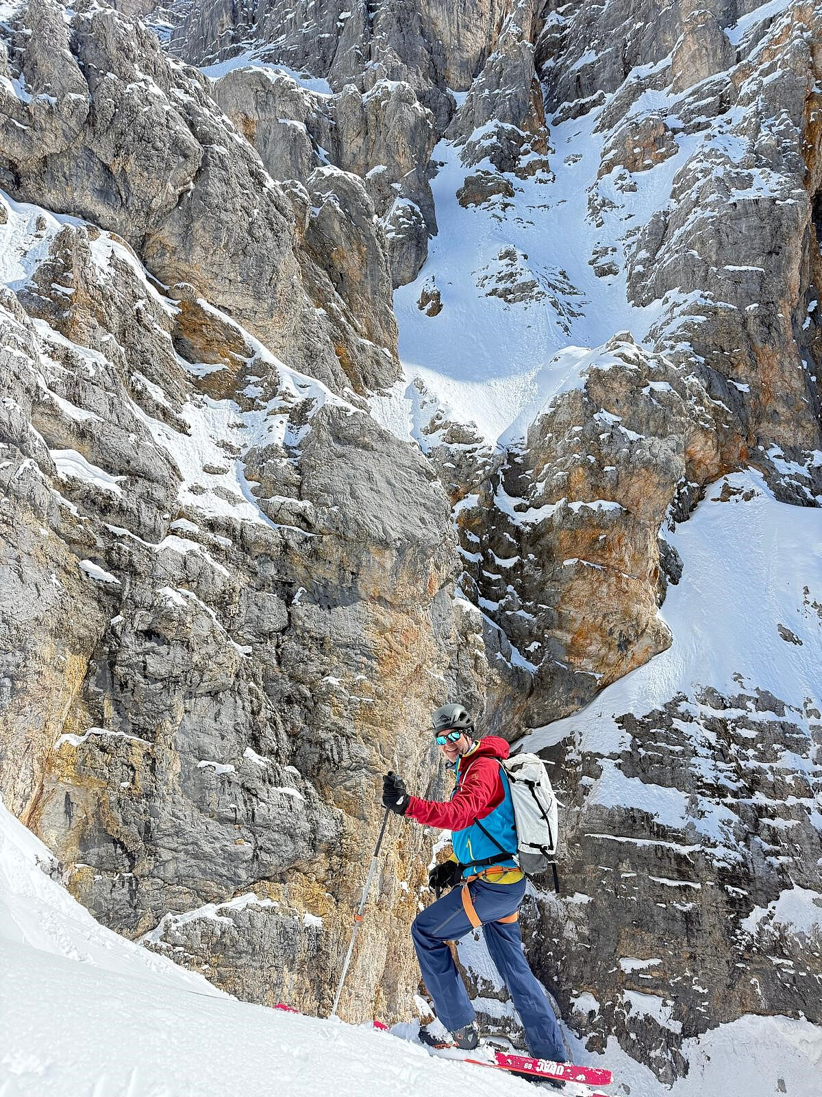 Und durch eine dieser Felswände – nämlich jene, die nach Osten Richtung Ehrwald in Tirol abbricht – gibt es sogar eine Skiabfahrt. Wobei man eher von einem Skiabenteuer sprechen sollte. Denn hier muss wirklich alles passen, wenn man die Route halbwegs genießen >>>
