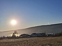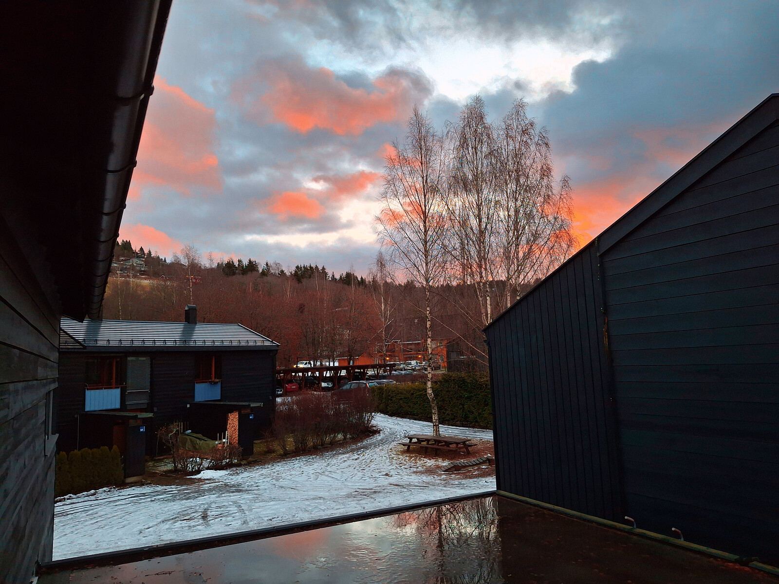 Etter å ha vært sammen med søstrene Aanrud på formiddagen, gikk jeg en liten tur hjemmefra. Vakker soloppgang på morgenen, skyet over til jeg kom meg på tur.