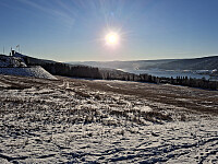 Rundtur om Lysgårdsbakkene i nydelig, kaldt vær. Sur nordavind over Randgårdsjordet.