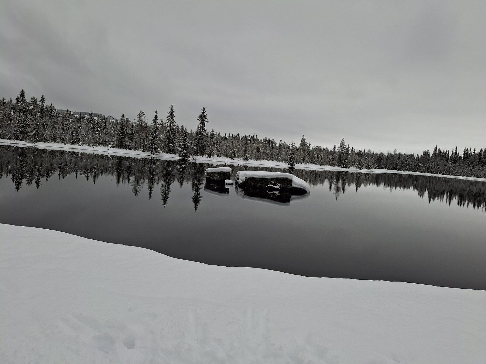 Det har kommet mye snø det siste døgnet. Holdt på å måke snø på verandaen da jeg så at det ble kjørt løype på jordet nedenfor. Da ble jeg inspirert til å gå ut en tur, selv om jeg hadde tenkt å fullføre å rydde bort jula. Begynte på det i går, 20. dag jul.