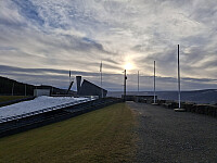 Rundtur om Lysgårdsbakken i nydelig vær. Stor aktivitet i hoppbakkene, forberedelser til verdenscup.