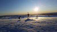 Målet for dagens tur var o-posten i enden av Melsjøen. Fra enden av Melsjøen gikk jeg løypa på nordsida av Melsjøen og opp til Hornsjøvegen ved Kruggerud. Derfra om Reinakrysset tilbake til Nordseter. Nydelig vær, litt vind og ganske trått skiføre i nysnøen fra i går.