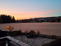 Tur gatelangs med Marit for julegavehandling. Grått, men fint lys på himmelen etter at jeg kom hjem.