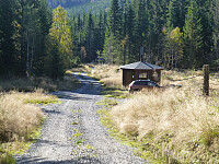 Vi kom fra Drangedal og kjørte mot Farsjø. Vi tok inn vegen til Svenum og parkerte i krysset der det er satt opp privatvegskilt.