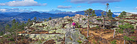 Turen videre var preget av fin sti på tørre området med myrdrag innimellom. Det var merket til toppen og lett å finne fram. Siste oppstigning var på sva i glissen furuskog. Høyeste >>>