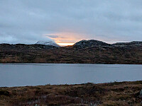 Her var det ei flott hytte på 10 m2 med båt. Oliver og Terje Kasper skulle fiske og jeg skulle på fjelltur. Jeg hjalp til å ro så de fikk dorget og satt ut garn. Total fangst fra torsdag 10 Oktober til Lørdag 12 Oktober ble ca 85 småfisk av rør (røye) + en del ørret, den største var 1,2 kg. På torsdag rodde jeg to kilometer og gikk i land for fjelltur. Jeg gikk >>>