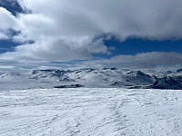 Blå himmel varslet yr, men tilnærmet ingen sikt. Venta lenge i Bjørneskaret på at det skulle klarne men gikk til slutt opp. Hyggelige kjentfolktreff og mange andre trivelige turfolk så ble en fin tur. Fin styresnø og gli ned Leirbreen igjen, lite vind og god temperatur!