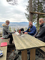 Lene bestemte turen i dag og da ble det Kjepphelvete - Faldåsen. Tørt og fint over furumoene. Etterpå ble det grilling hos Bodil. Bare sola manglet.