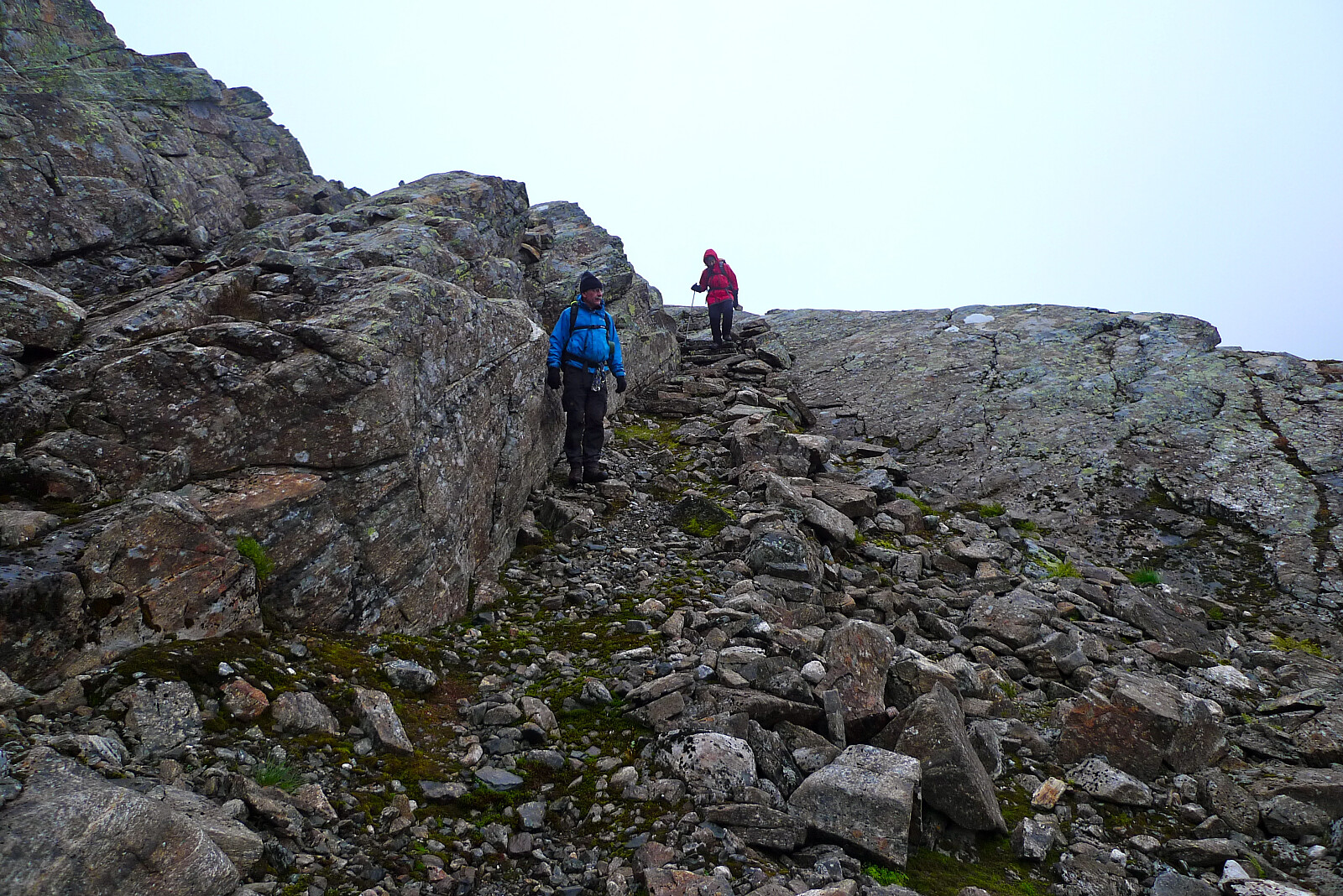 Vi fulgte stien opp i høyden ved SV-siden av Langafonnvatnet. Derfra tok vi kurs mot sørsiden av Fresvikbreen. Ingen sti her, men spredt småvarding indikerte at vi var på rett vei.