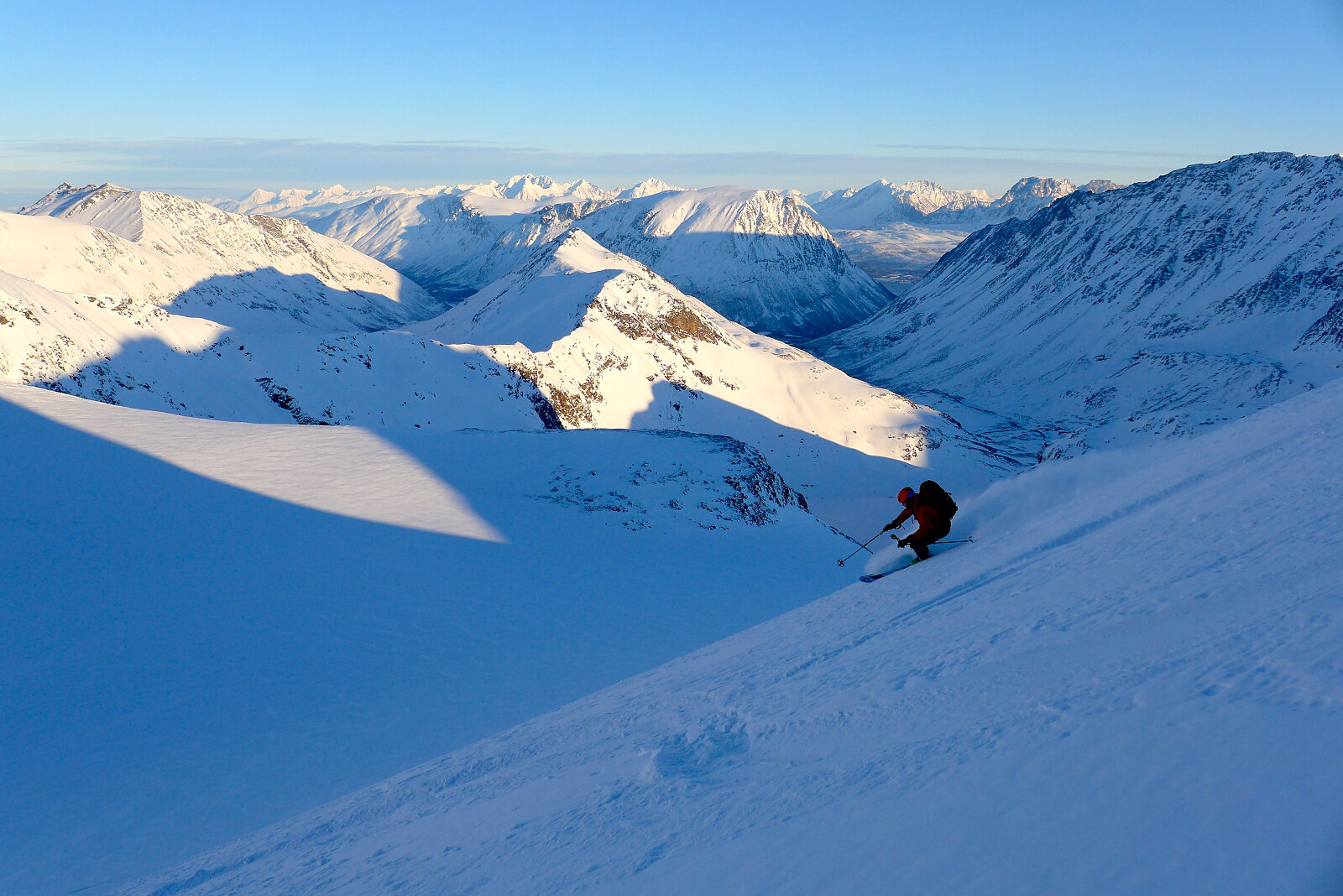 Opprinnelig hadde ingen av oss trodd at lørdag skulle bli så fin da vi sjekket værmeldinga tidligere i uken, men det viste seg at godværet skulle vare litt lenge enn først antatt. Bra for oss. Renate og jeg hadde en avtale om å dra til Saltdalstinden men Tim og Johanna plutselig dukket opp på parkeringsplassen ikke veldig lenge etter oss, så naturlig gikk vi turen i lag. Dette skulle bli min fjerde tur til Saltdalstinden, som jeg mener er ett av de fineste skifjell i området. Derimot har jeg aldri sett utsikten fra toppen i ordentlig dagslys, enten på grunn av at det har vært midt i mørketida eller pga tåke.