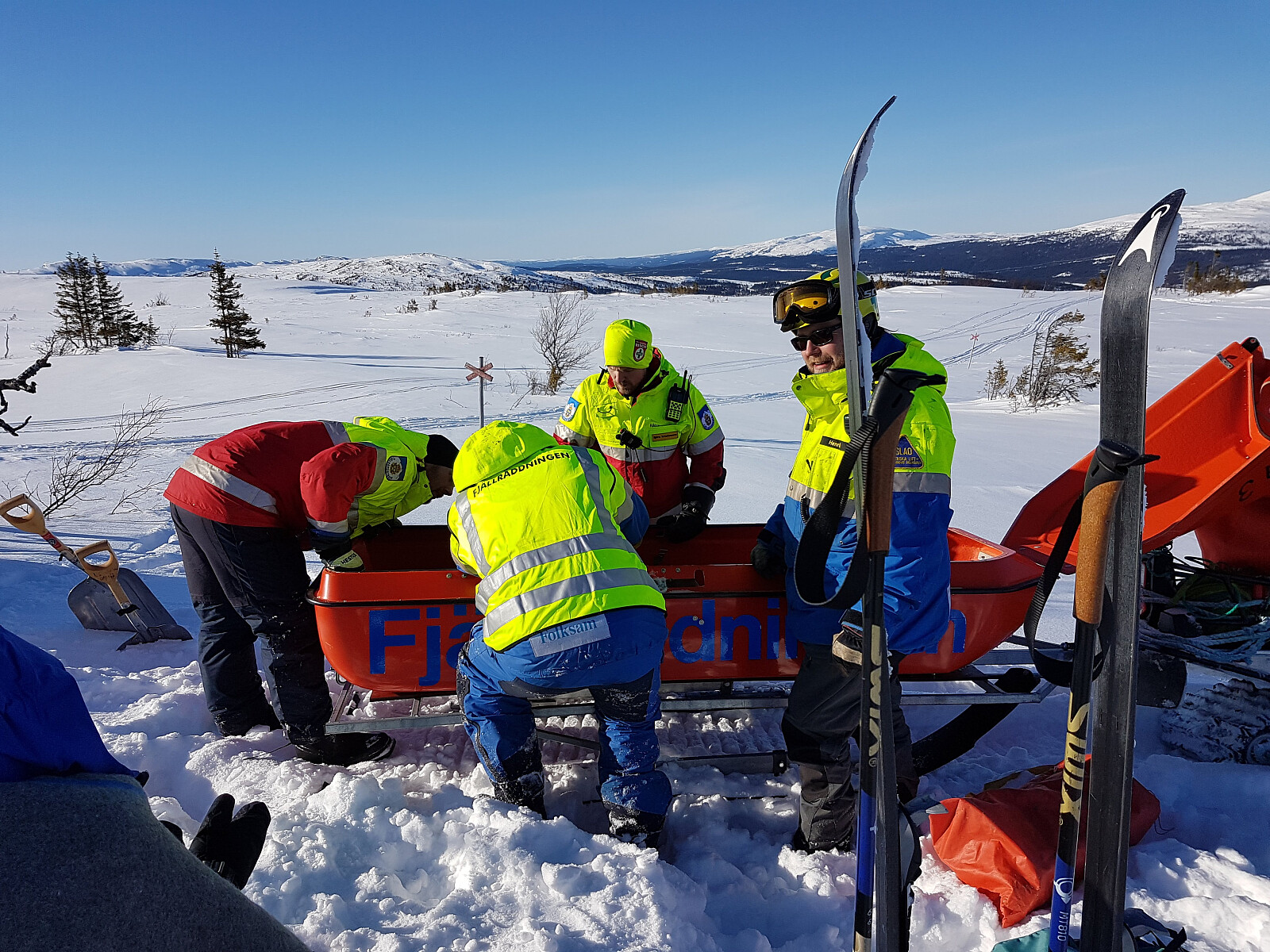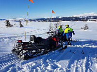 2 timer satt vi slik. Da kom det flere scootere fra Svenska Rädningstjensten. De kom fra andre siden av elva mot Åreskutan selvfølgelig. Og hadde kjørt feil også. De hadde leita på andre siden av fjellet (sørsiden), fantastisk.