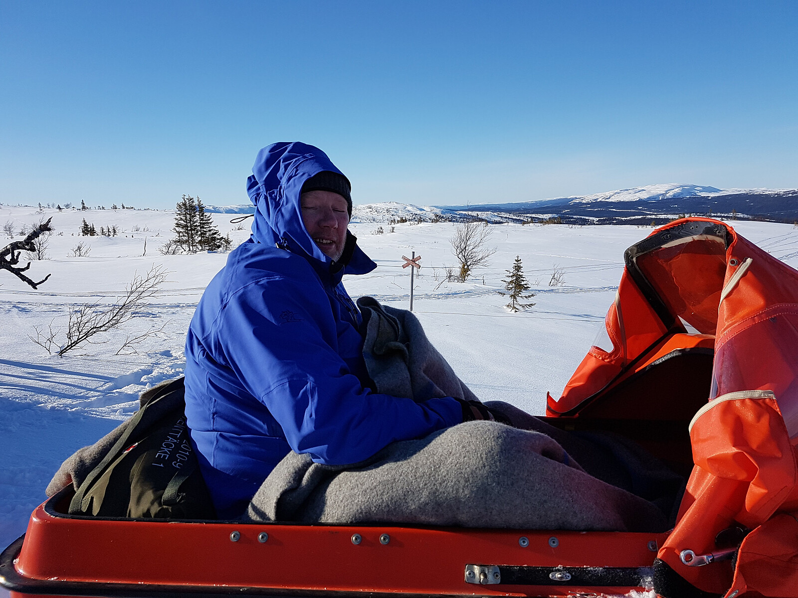 Heldigvis hadde vi nok sitteunderlag til at både rævva og beina slapp direkte kontakt med snøen.