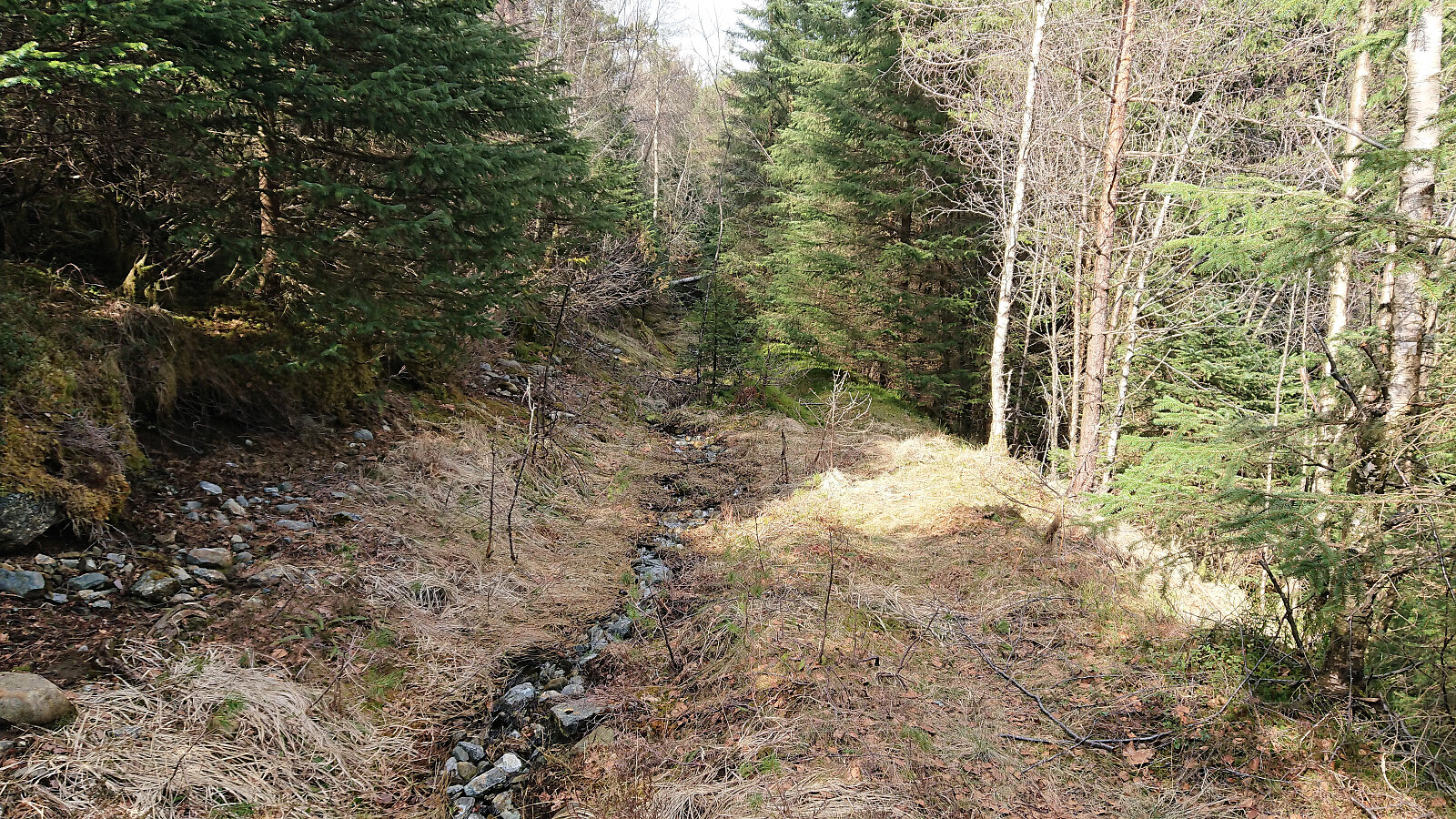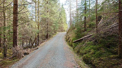 The terrain was overall easy to traverse, and with the help of various deer tracks, I soon reached Geitaskaret where I came across a weak trail that later connected with an old tractor road. I was therefore surprised when after turning southeast and climbing up the poor tractor road, found myself on a brand new (or at least recently renovated) gravel road. Maybe my off-road struggles were over and this road would take me all the way to the lower dam?