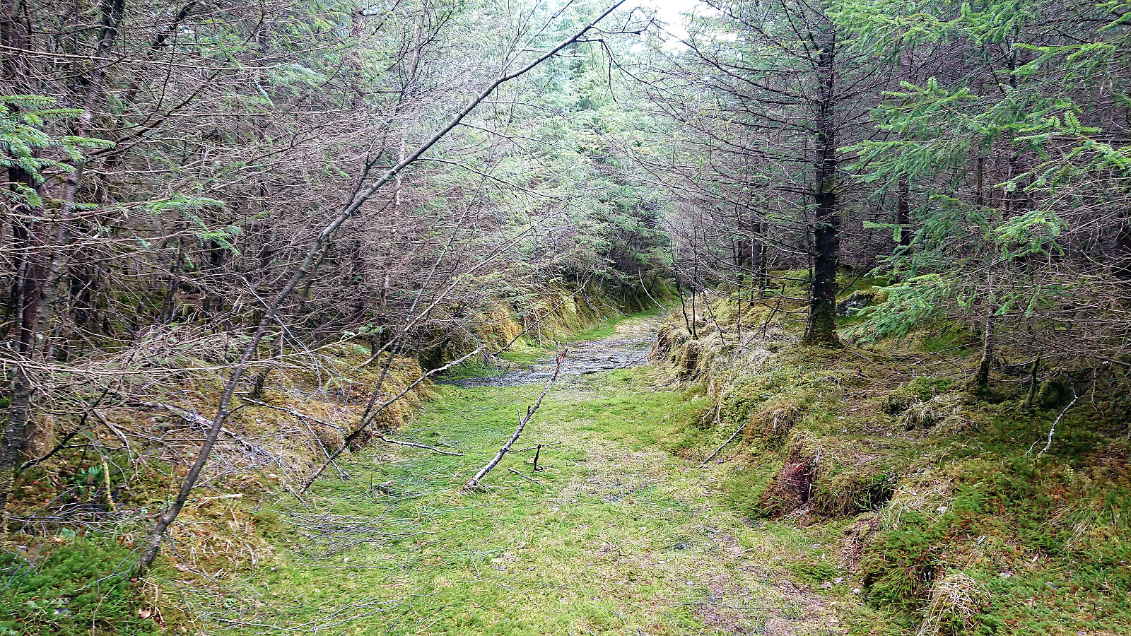 The tractor road heading south was slightly better, but very wet, and as soon as I left the crossroads in Bødalen, to continue south towards Reppåsen, the road/trail more or less disappeared for a while, until reappearing as an even wetter tractor road. It did improve slightly as the road started to climb though.