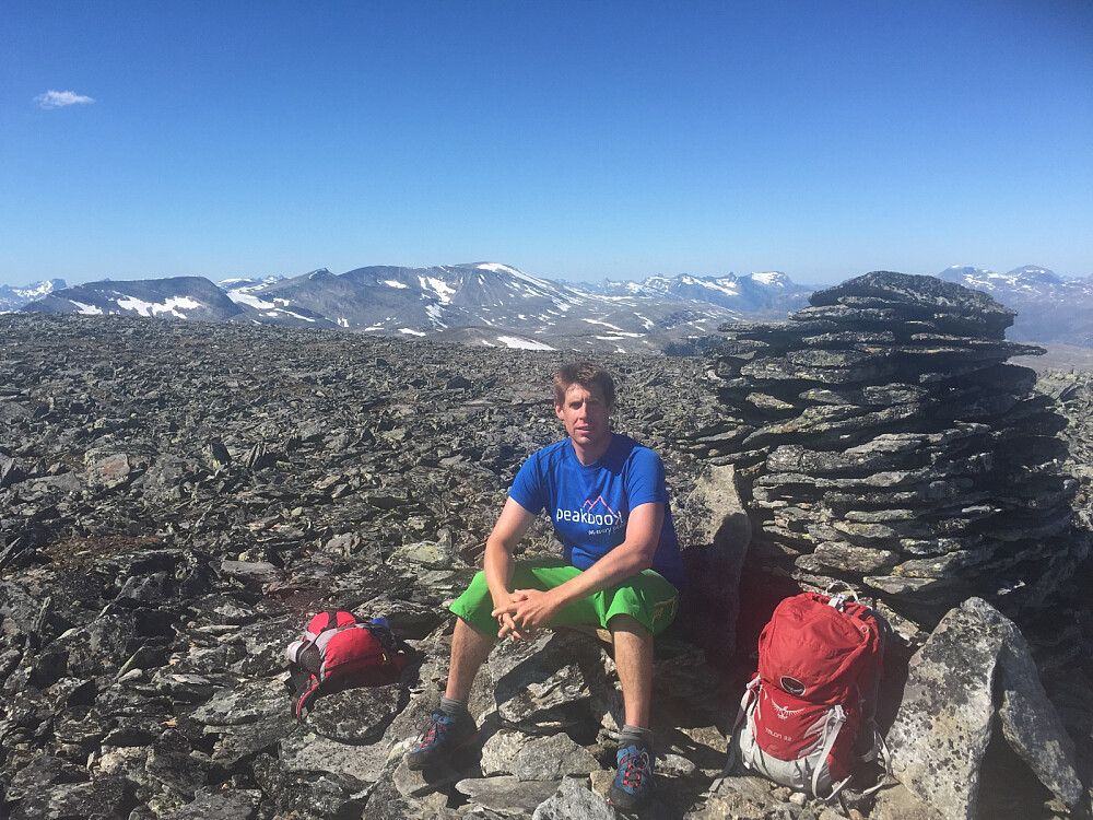 Våknet opp til en ny strålende dag, skyfritt og ikke et vindpust. Etter å ha pakket sammen teltet og fått i seg frokost kjørte vi opp til Enstad parkering. Virkelig varmt i dag. Sola stekte virkelig i sida her. Sakte og sikkert gikk vi oppover sida mot toppene. Flott sti innover mot Aursjøhytta. Etter å ha gått en stund oppover sida merket jeg at jeg ikke hadde solbrillene på meg, da jeg hadde tatt de av meg og lagt de på sekken i det jeg hadde på solkrem. Etter det begynte jeg med peakbook-appen på telefon og det gjorde at jeg bare tok med meg sekken og glemte solbrillene. Irriterende - ville de være der da vi kom tilbake og ville de være hele, for langt å gå tilbake nå. Litt før vi kom opp til Nedre Mølmsvatnet tok vi av stien og begynte opp ryggen mot Storhøi. En kort rast oppe på ryggen før vi gikk opp på toppen. Derfra videre mot Mehøi, og ned mot Mølmsbotnen før vi begynte på ryggen mot Svarthøi. Oppe på ryggen tok vi en lunsjpause, før vi begynte på ryggen og den siste kilometeren gikk for det meste på snø. Siste topp for dagen, ned igjen mot Nedre Mølmsvatnet hvor det ble et forfriskende bad før vi begynte på stien ned igjen til bilen. En litt annerledes tur en dagen før med mye snillere fjell, men et utrolig flott området og et lettgått terreng som jeg hadde sett for meg kunne ha blitt mye ur. Også utrolig flott utsikt mot både Tafjordsfjell, Romsdalsfjell og Sunndalsfjell. Nede igjen lå solbrillene der sekken lå - virkelig en flott avslutning på en flott tur.