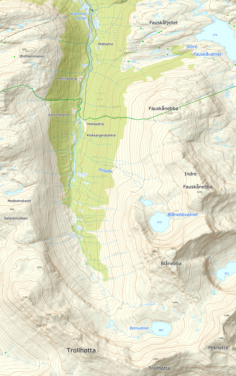 Dette ble en høydare av en dag. Hadde egentlig tenkt å stoppe etter Pekhøtta men fristelsen ble for stor rett og slett ;-) Gul trekantpunkt på traversen før Trollhøtta 1299 synes en smule overdrevet. Her er greit å gå, og ingen krevende klyving slik jeg ser det. Man har mulighet til å omgå et bratt opptak der med å følge tydelig tråkk rundt på hø. side. Egga var flott å følge og på hele runden, med unntak av noe laus ur ned fra Pekhøtta og vegetert avslutning ned fra Fauskånebba, var terrenget utrolig flott og lettgått. For en dag :-)