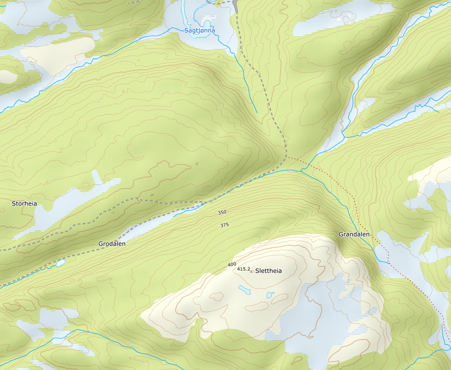 Veldig vått opp til Tjønnslettoppen i dag.Kom akkurat i bilen etter turen da kom den første regnbyga på turen så i så måte var man heldig.En tur hvor man ser at de gamle seterveiene er der fortsatt med nesten helt grodd igjen.Høsten er godt i gang no.