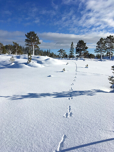 Sporsnø.Mikkel Rev hadde fulgt sporet litt lengre bort.(se spor som kommer inn fra høyre bildekant)