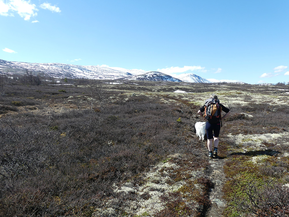 Mot Hjerkinn Fjellstue og Knutshøene.