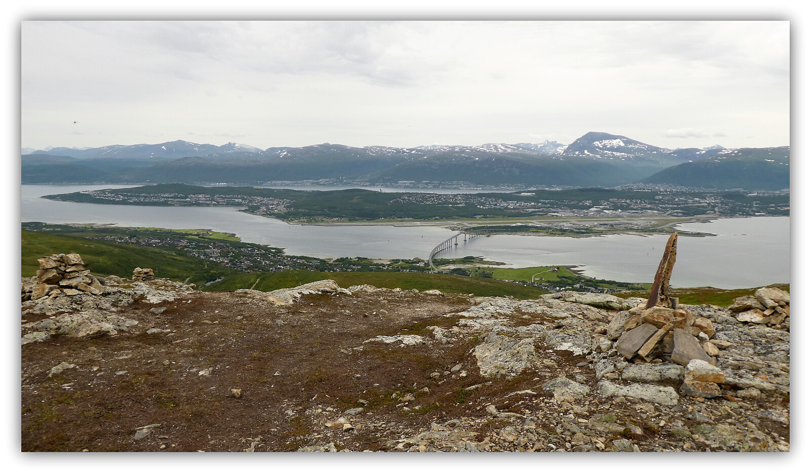 Dagens tur opp til Finnlandsfjellet startet i et varmt og godt vær. Dette ble min "Ti på "Topp nr. 7 i 2019 så nå er koppen(premien) i boks. Mange på tur i dag og noen skulle videre opp dalen til Kjølen. Fint på toppen (det er vel ikke en topp i så måte da du kan fortsette oppover til en annen topp)Er vel helst et turmål oppe på Finnlandsfjellet. Etter en pause med innskriving i trimboka og noen bilder tok jeg turen innom Slaktarhaugen på tur ned. Da hadde regnet allerede kommet men det var bare herlig i varmen. Fin tur i dag men fortsatt en del fluer som fulgte med på turen. Begynner å bli litt lei det turfølget der no. Nå er det bare å ta fatt på turen hjem til Trøndelag og + 30c. Fortsatt God Sommer her oppe i nord!