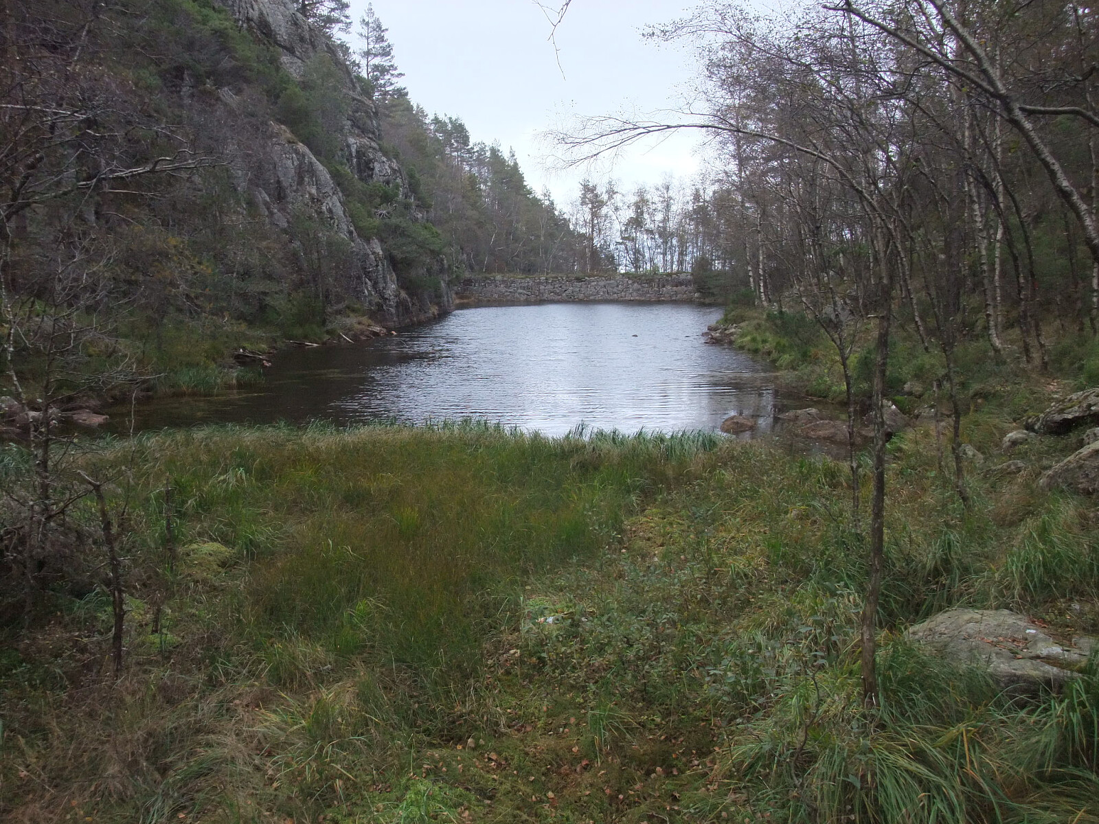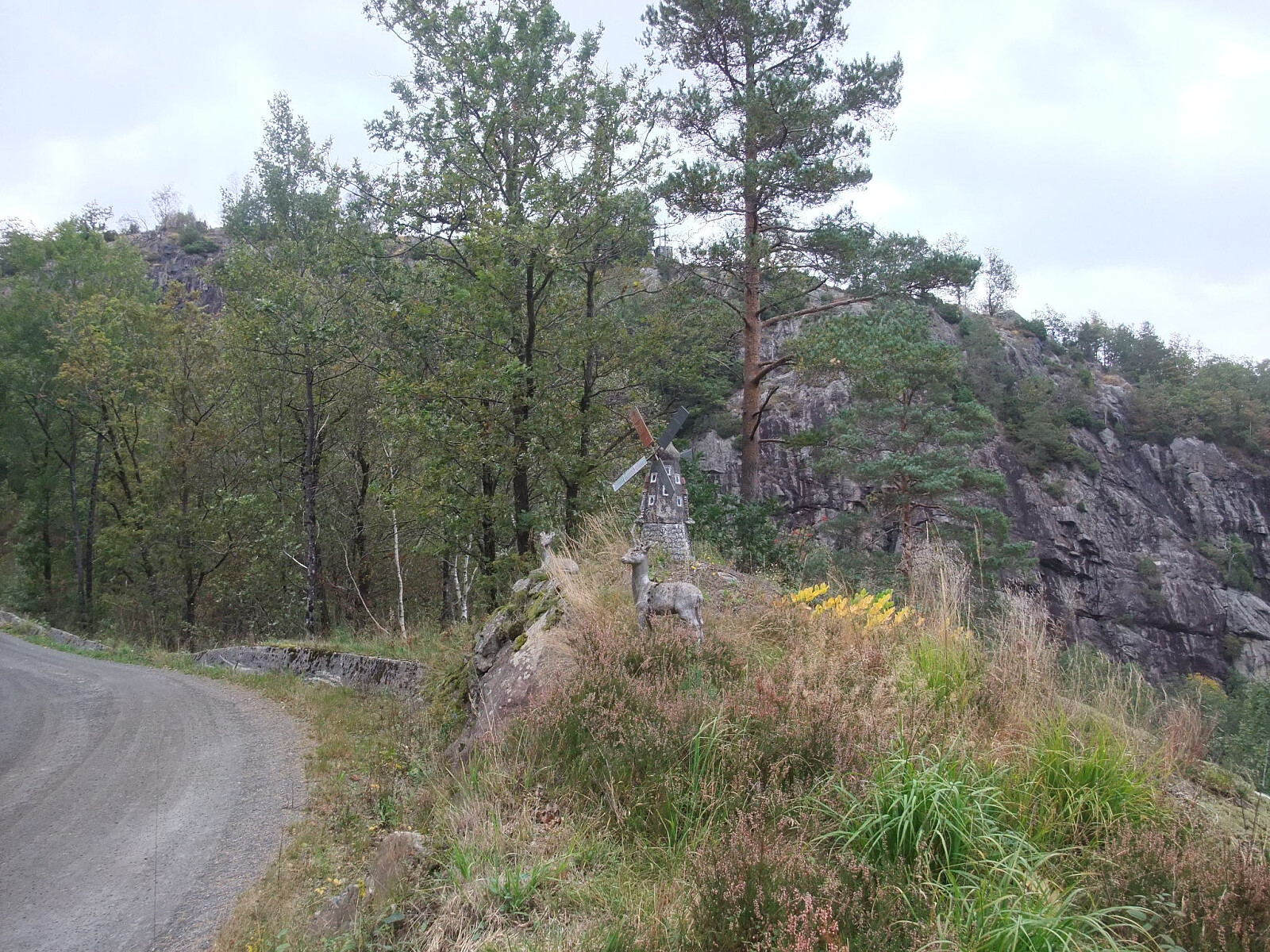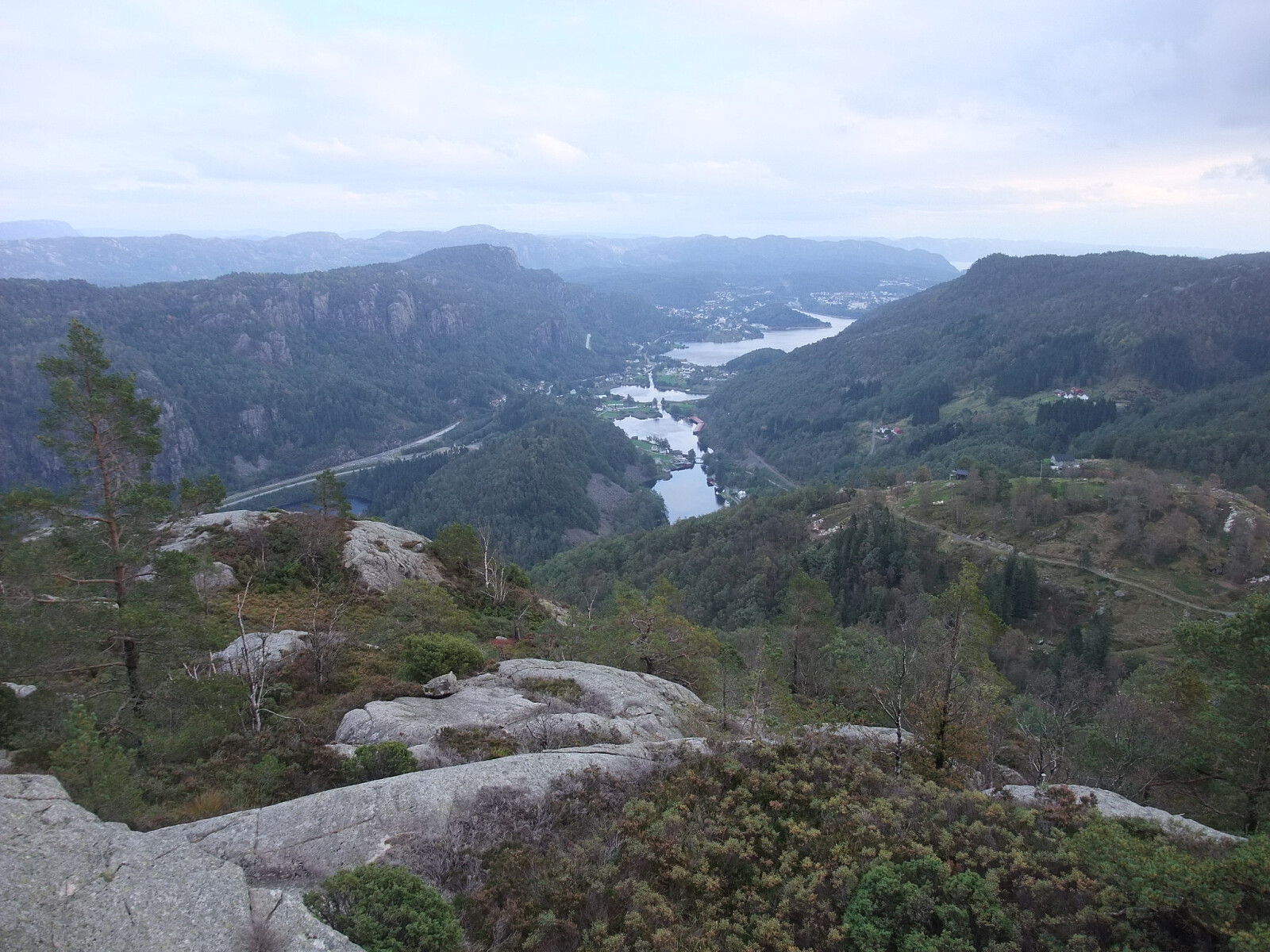 Fulgte så sti ned langs nordsida av Krokevatnet skilta mot Helle. Frå austenden av vatnet ein tur oppom 387-toppen på sørsida av vatnet. Så nordover i terrenget via vestsida av Fiskelaus til eg kom inn på sti og skogsveg til Soland. Der er det også merka sti til Solandsvarden, mens eg fulgte ein annan merka sti opp sørsida til Lafjell. Vardebok på utsiktspunkt på søraustkanten. Mobilmast på toppen. Sti ned nordsida til utgangspunktet.