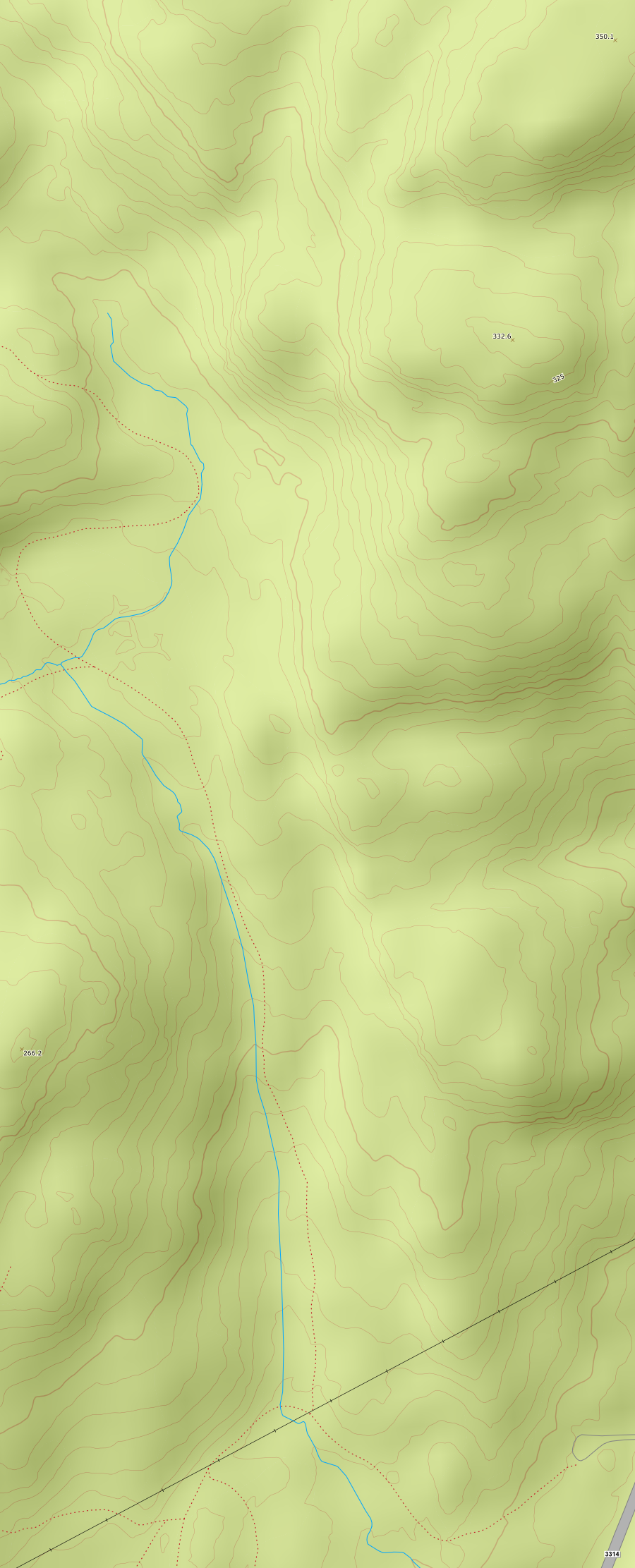 Fulgte en koselig gammel skogsvei oppover med en symfoni av fin fuglesang, til det var merket med to plastbånd. Her så det ut som om vi skulle inn i terrenget, men leita etter en farbar vei å gå, fant dette elgkadaveret, eller rettere sagt beina etter det. Kom oss bortover og snublet over rødmerkingen igjen. Ta av skogsveien det våre spor kommer inn på den igjen på vei ned.