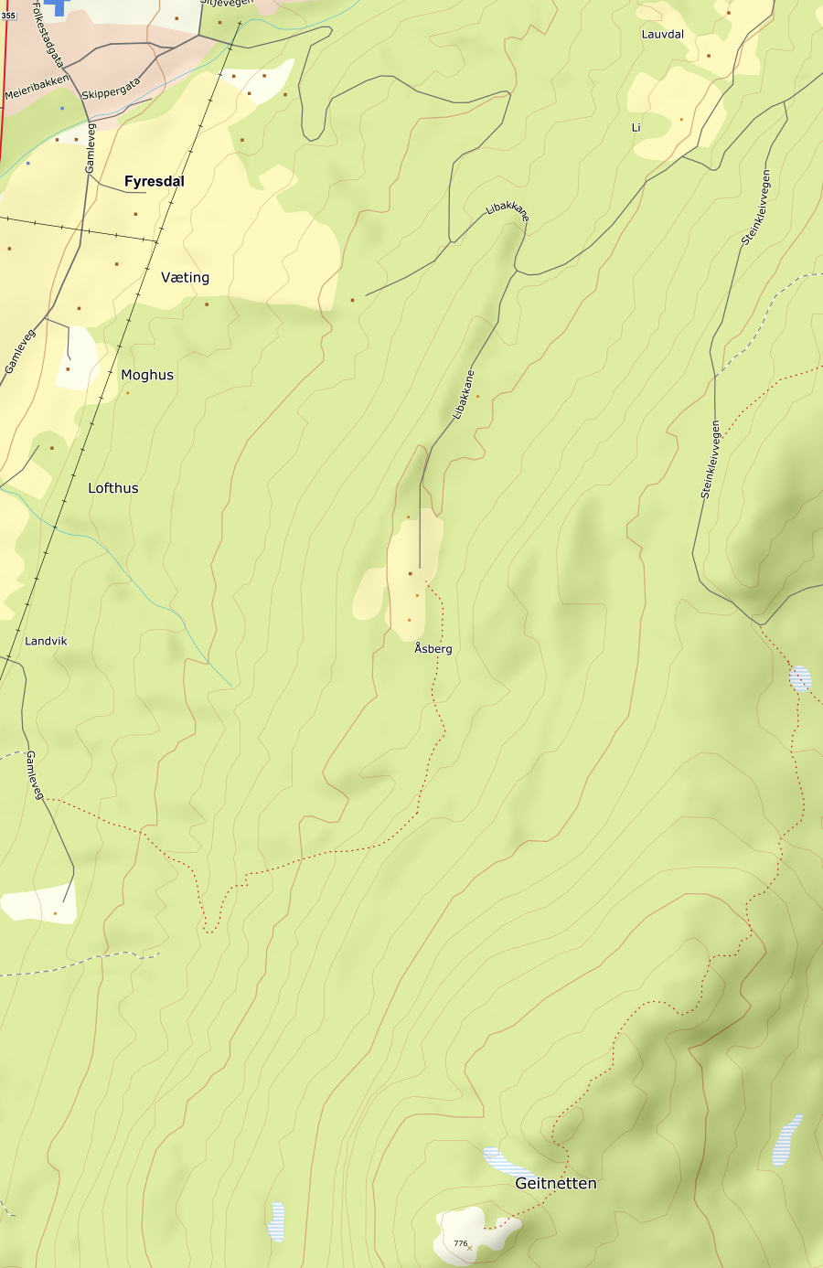 Liv er fortsatt på opptrening og syns det var tungt å begynne å gå i dag, etter den fine, men tunge turen til Høgenut i går, men tråkket oppover i fin stil likevel. Etter første store svingen, ved informasjonstavlen om turen, tok vi til høgre inn i skogen og fulgte stien frem til krysset ved Åsberg. Videre langs tømmerslepe og stier. Mot toppen passerte vi Solemskar og gikk ned i et lite søkk før siste bakke opp mot toppen. Toppen har varde og ved foten av den store reflektoren er det kasse med bok. Det var lagt ut tau her og der på de bratteste partiene. Vi bevilget oss en lang pause med nistepakke og flott utsikt, før vi gikk ned samme vei. På veien ned igjen traff vi 3 spreke barn og langt bak dem fulgte de voksne. En kan nok kjøre lengre opp i bygda om en vil og parkere ved veien et sted, men vi fulgte anbefalingene til fjelltrimmen i Fyresdal og parkerte i sentrum.