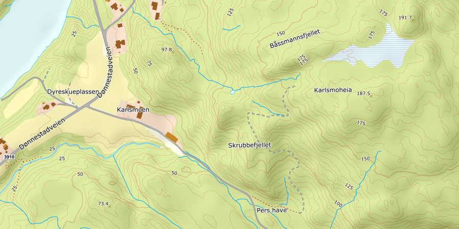 Fin tur, om enn ikke så lang. Følte meg litt usikker på om jeg begikk "trespassing" da jeg gikk inn Karlsmo-gårdens allé i turens begynnelse (se bilde stjålet fra Google). Men møtte en hyggelig beboer som forsikret meg om at jeg var velkommen. Fulgte en traktorvei et stykke oppover mot heia til denne tok slutt. Derfra gikk ferden videre utenfor sti. Fikk med meg et OK utkikkspunkt mot Kjevik flyplass før selve toppen (som i og for seg ikke var så veldig spennende). Det var noen tegn til at det har stått et landmålermerke eller noe lignende på toppen (triangulering?).