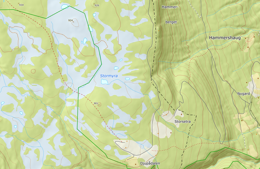 Ble en tur til favorittoppene mine idag. Etter innetjeneste på formiddagen var det godt å komme seg ut en tur. Kvigene på setra gikk helt nederst på seterlykkja, og det var nesten vondt å forlate dem, da alle fulgte etter meg.