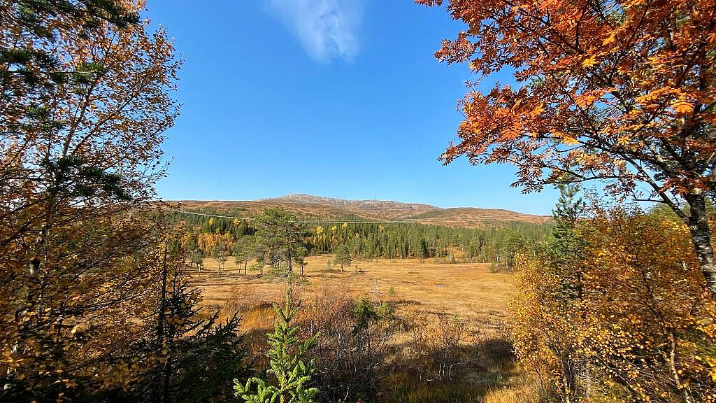 Det var en flott høstdag i Trøndelag så dette ville bli en fin tur. Etter at den planlagte turen opp på Salan i Indre Fosen kommune ble lagt på is så valgte jeg å kjøre mot Namdalseid for å ta turen opp til Øyensskavlen. Tok av og fulgte RV 715 mot Osen. Ved Myrmoen ligger en stor p-plass hvor grusveien opp til Øyensskavlen (Øyensskavlveien) begynner. Veldig fint å gå etter veien opp til Kalnestjønnin hvor det ligger en trimpost og en flott gapahuk ved den øverste tjønna hvor det kan være fint med en liten rast. Oppe ved Saksheia tok jeg korteste vei opp brattlia mot masta før jeg kom inn på veien igjen. Fint å gå her oppe fra masta og videre mot toppunktet. Tydelig sti som du kan følge. Flott utsikt fra toppvarden selv om det var litt disig i dag.Her var det også litt vind så måtte på med litt klær da jeg måtte kaste t-shorta tidlig på turen. Varmt i slutten av sept. i Trøndelag:) God pause på toppen med litt mat og drikke (husk å skriv deg inn i boka som ligger inne i varden) Hadde faktisk vært en turgåer her tidligere i dag. På vei ned igjen var det kommet en bil med service folk opp til masta så det er nå "litt" aktivitet her. Nede ved p-plassen møtte jeg en person som skulle ta turen opp så det er nå tydelig at dette er et populært turmål. Fin tur i et fantastisk flott høstvær!