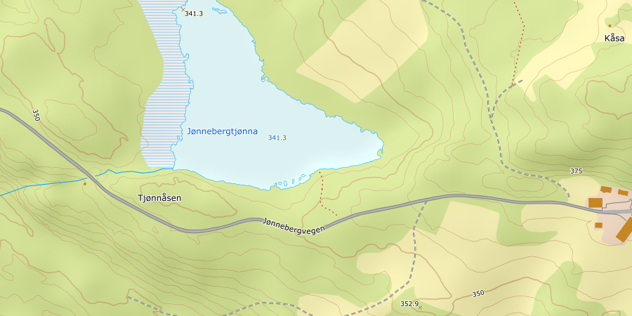 Kjørte opp Jønnebergveien og da begge bommene stod åpne, ble det altfor fristende å kjøre opp. Parkerte på en fin plass/utkjørsel ved beg. på en traktorveg, da vi ikke ville kjøre helt opp til husene. Gikk innover den flate veien til vi så husene, tok en traktorveg som gikk parallelt med grusveien vi gikk. Fulgte denne bare noen meter før vi tok opp i skogen. Fint å gå mellom trærne der, litt elgtråkk og veldig kort tur opp. Måtte klatre et gjerde og gå over et annet som lå flatt. Trigg.punkt på toppen. Litt bortenfor toppen er det litt utsikt. Det luktet veldig rev på toppen, lurer på hvorfor? Appelsin og sjokolade før vi gikk ned igjen samme vei. Kjørte innom Bø gamle kirke på vei hjem og tok også en pause med endene på Ulefoss.