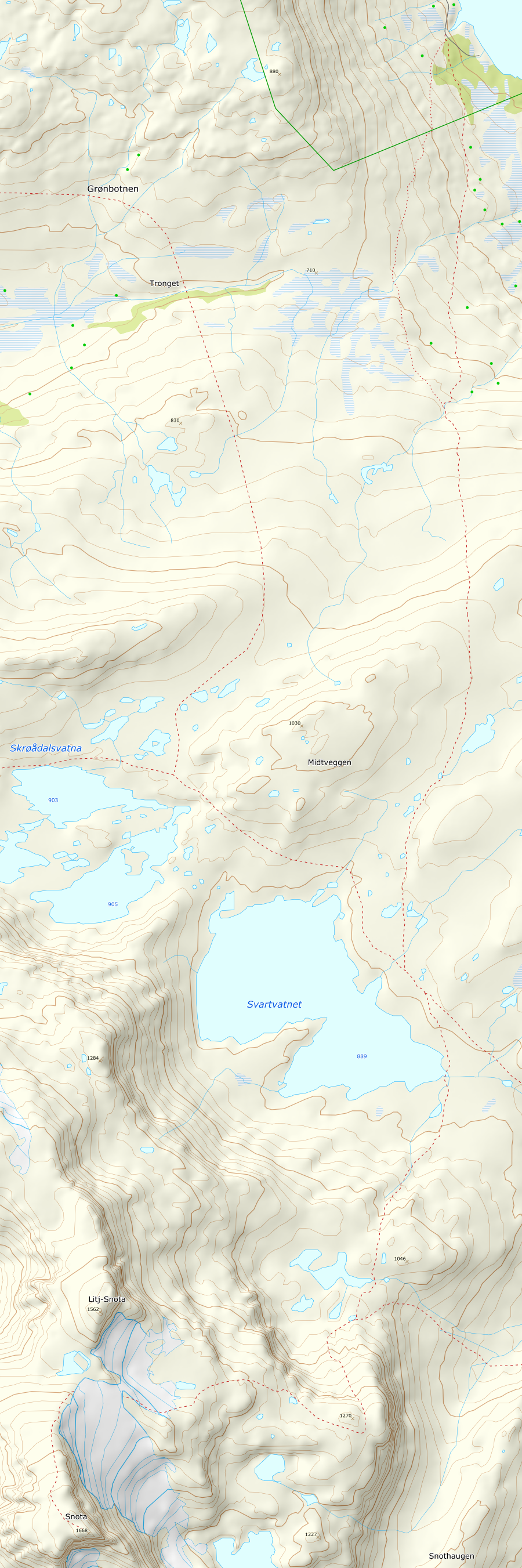 Utsikt mot nord. Gråsjøen helt nedtappet pga damarbeid som skal pågå i flere år.