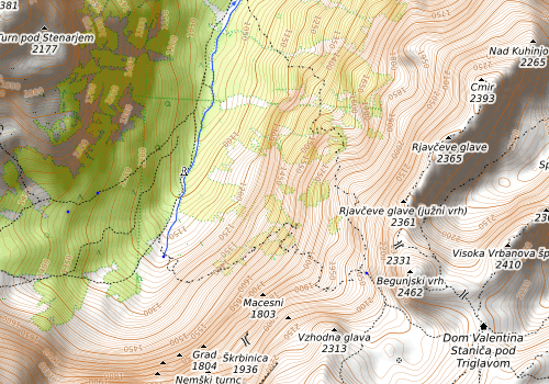 På kort varsel slengte Lars seg med på resten av Øst-Europa turneen min. Han hadde leid en hvit og litt eldre VW Polo i Pula (Kroatia), og plukket meg opp 3 timer senere ved Lake Bled i Slovenia. Sammen kjørte vi de resterende milene til Mojstrana og deretter innover i Vrata Valley. Vi betalte 3 Euro i parkeringsavgift ved Aljazev Dom (950 moh), pakket sekkene våre og satte avgårde mot Triglavski Dom denne ettermiddagen. Vi bestemte oss for Tominskov-ruta oppover, som visstnok er en brattere og litt mer eksponert rute enn Prag alternativet. Ruta viste seg å være en slags enkel "via-ferrata" og godt sikret med isenkram av nyere dato. Derfor gikk det meget problemfritt oppover. Vi kom etterhvert inn på Prag ruta høyere oppe, og derfra bar det i lettere terreng videre til Triglavski Dom (2500 moh) som vi ankom etter totalt 3 timer og 15 minutter, i god tid før mørkets frembrudd.