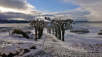 When a meeting at Solstrand ended after a late lunch, I had originally planned to take the ferry across the fjord to go hiking in Fusa. However, after waking up to a snow-covered Solstrand, it was clear that my hike would take significantly longer than planned and I would be at risk of not catching the all-important bus back to Bergen. I therefore decided to play it safe and instead do a revisit of Borgafjellet and Møsnuken. At least this would allow me to visit the new dagsturhytte at Borgafjellet, in addition to some other minor summits I had not previously visited.