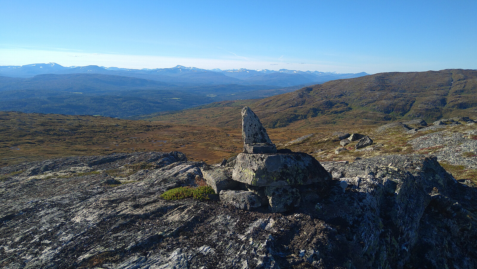 Stabilt høyttrykk over Trøndelag i over en uke nå gjør at selv myrene er tørrere, men kjølige netter gir morgendugg, og det var det i dag også. Jolifjellet gikk jeg på fra avkjøringen til Stuggudalen. Gammel granskog betød lite undervegetasjon, og det var lettgått de drøye 500 høydemeterne oppover både under og over tregrensa. Flott utsikt fra toppen.