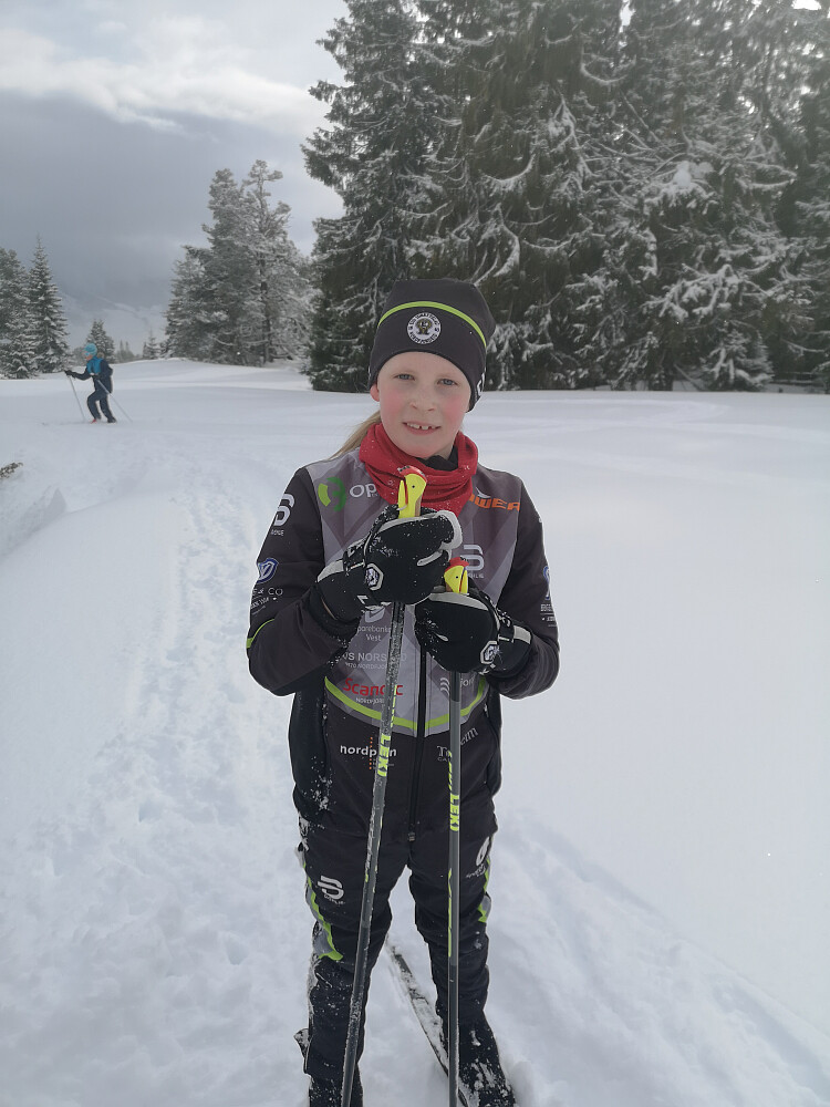 Flott langrennstur med Vinjar, Carla, Sam, Sofus, Tom og morfar Lars ut til Nosakleiva. Snøbyger som kom og gikk, men også gløtt av sol innimellom.