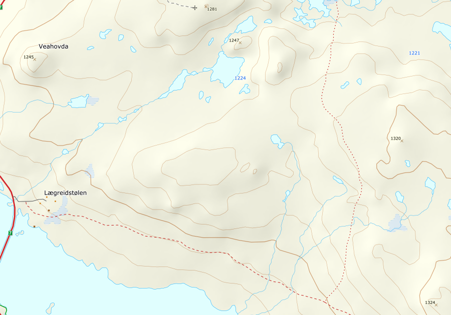 Jeg parkerte ved Lægreid på egnet p-plass nord for brua langs rv7. Herfra kunne jeg se Monsbunuten som kun så ut som en liten forhøyning i terrenget. Det gikk fine skiløyper retning toppen, så jeg fulgte disse et godt stykke. Som for så mange andre topper på denne enorme vidda, så ble jeg også her litt lurt med tanke på avstander. Man synes liksom ikke man kommer noe nærmere, før man plutselig står på toppen:) Skiløypene fulgte omtrent sommerstiene i området, og den siste biten tråkket jeg selv spor opp til toppen. Til tross for at toppen så beskjeden ut fra avstand, var det ingen tvil om at den ruvet godt i omgivelsene da jeg sto på toppen. Jeg brukte litt tid på Monsbunuten før jeg fortsatte videre til toppen som ligger en drøy kilometer lenger nord. Denne var litt mer markert, med en noe mer variert utsikt. Herfra gikk det unna ned til vann 1224 før jeg kunne lirke meg opp på turens siste topp på temmelig bakglatte ski. Varden i Hol synes godt fra hyttefeltene øverst i Hallingdalen, og utsikten var naturligvis god også motsatt vei ned til Haugastøl og Ustaoset.