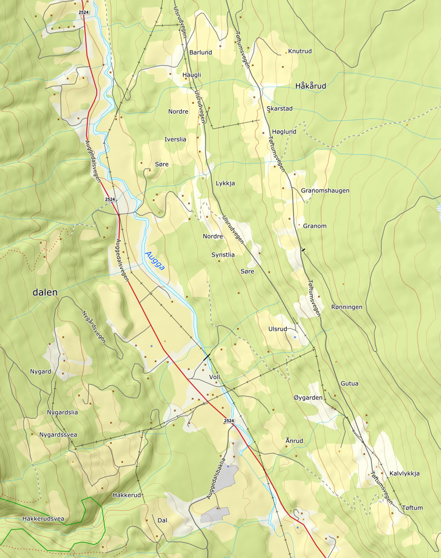 Utsikt mot baklia, fra Dahlslien til Nygaard