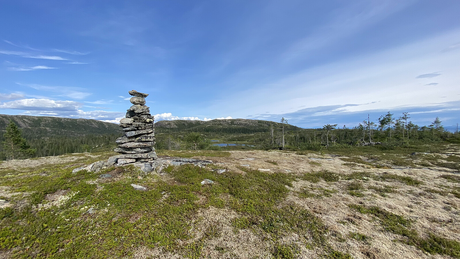 Nye topper og nytt terreng ventet på dagens tur. Kinna og Sauheia med en tur innom Mevassetran var planen. Allerede på parkeringsplassen fikk man et hint om at mange var på tur i området i det fine været. Mevassetran er jo også en "åpen seter" i juli måned så det er vel en del som tar turen dit for et besøk. Turen startet etter skogsvei og det ble fort ganske bratt etter hvert. Høydemetrene tok man ganske raskt og det var merket hvor høyt man var kommet for hver 100 meter. Etter hvert tok jeg av fra stien og tok rett peiling mot Kinna. Oppover lia her var det satt vinter merking for snøskuter løype med høye påler som jeg fulgte en stund. For det meste myr og lynghei her. Fin utsikt fra Kinna hvor det ble en god rast med inntak av litt næring. Så gikk jeg ned dalen og krysset den før oppstigningen mot Tempelheia toppen. To turgåere kom etter den oppmerkede løypa fra Munken og gikk i retning Mevassetran. Litt overraskende å møte noen her men som sagt mange er på tur denne dagen. Varden på Tempelheia hadde fått hard medfart så her måtte det litt restaurering til. Ny god pause ble det her oppe før turen ned mot Mevassetran begynte. Da jeg kom inn på den merkede stien igjen kom det to nye turgåere med hver sin hund som var på vei til setra. De hadde bestilt bord der for mat servering men var litt forsinket. Slo følge en stund med disse men nede ved Mevatnet gikk jeg innom koia til NTNUI og hvilken koie det var. Her var det satt opp ei stor hytte og nede ved vannet et flott og stort naust. Her har studentene fra byen flotte muligheter. Seterhaugen ble også besøkt før jeg tok turen innom setra. Her skulle det være konsert i dag med en fløyte spillende danske.(seljefløyte og bukkhorn) Fikk en kopp kafe av budeia hvis jeg lovte å komme tilbake en annen gang og kjøpe lapper og kaffe. Blir nok en tur til men da er vel setra stengt for sesongen. Her på setra var de i gang med bygging av nytt bygg som gjestene kunne benytte i dårlig vær men i dag var det ikke nødvendig selv om det var fyrt opp i bålpanna var det for å holde insekter unna ikke for varmen sin del da temperaturen var upåklagelig. Det var snakk om at hele 40 stk. hadde meldt sin ankomst til konserten i dag så jeg regnet med å møte på flere da jeg startet nedturen mot parkeringa.. Vel det ble vel en 20 stk. som jeg møtte nedover så de ville nå få en fin opplevelse i dag tenker jeg. Selv valgte jeg å gå ned da det enda var over 2 timer til konserten startet. Kom ned til bilen litt mo i knærne men en fin tur hadde det vært!
