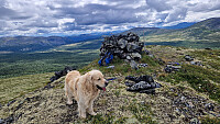 Etter at maten var inntatt og litt veskepåfyll var jeg klar for å fortsette mot Skittenkletten. Gikk litt tilbake samme vei før jeg gikk via høyde 1128. Fra der bar det ned i Skårdalen. Mye kupert terreng med kratt,myr og kjærr. Sikta inn mot noen mosekledde rygger som jeg fulgte oppover mot toppen. Varde og fin utsikt mot de omliggende topper her.Fra her gikk turen videre nedover og mot stien i dalbunnen. Fin sti videre tilbake til gjeterbua. Her hadde gjeteren nettop kommet tilbake og han spanderte kaffe ute ved buveggen.Fin avslutning på en fin turdag med knallvær.