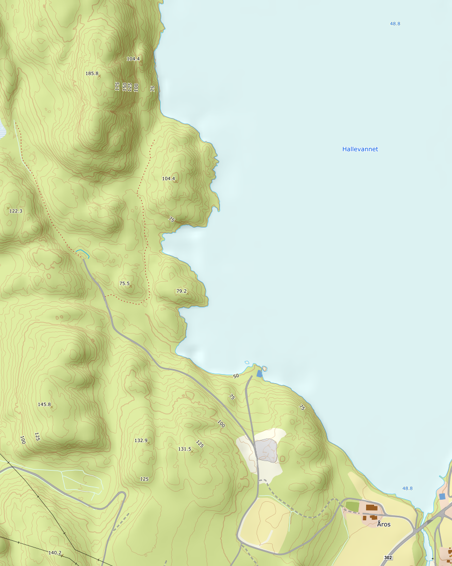 Tilbakeblikk fra den sørlige kollen mot Halle Mølle og utgangspunktet for min tur.