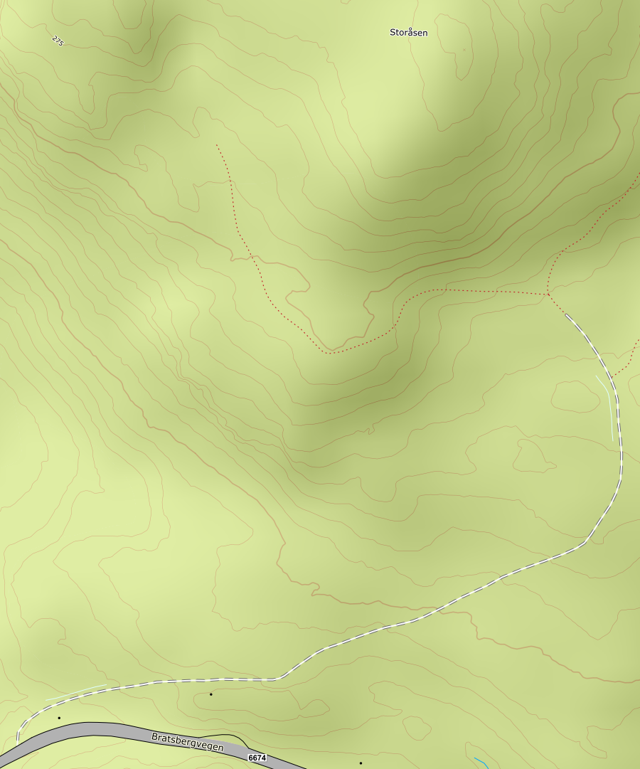Storåsen ligger rett sør for Jonsvatnet og er en markant topp til tross for beskjeden høyde. Jeg parkerte langs veien på en lomme i skaret sør for toppen. Gikk så litt vestover og inn på en traktorvei som jeg fulgte et stykke oppover. Den siste biten gikk i bratt, men greit terreng opp til toppen. Fin utsikt over Jonsvatnet fra toppen.