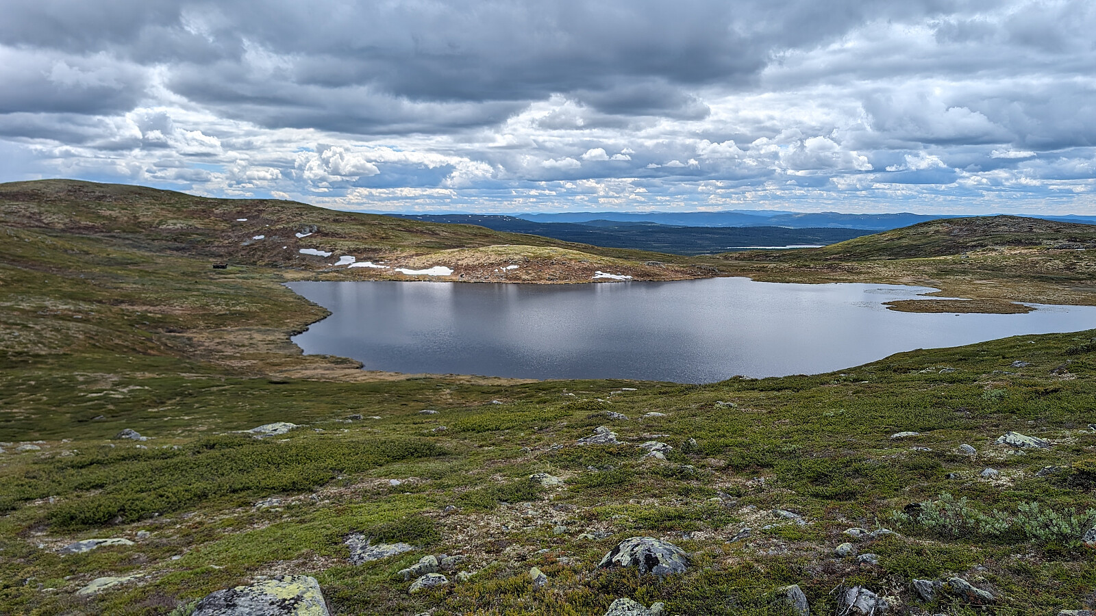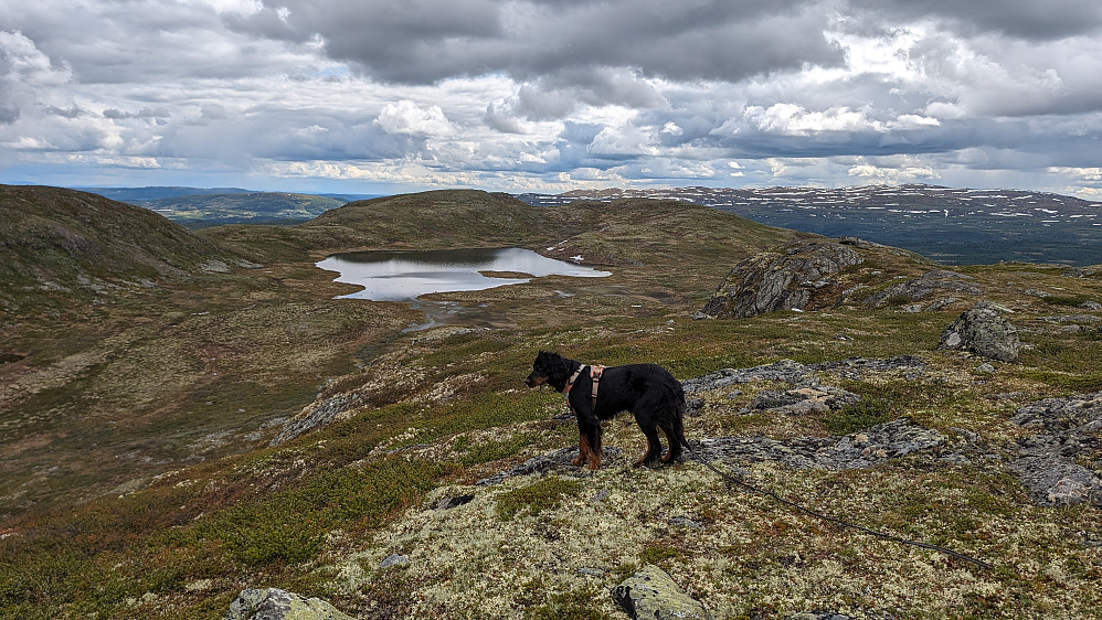 Opprinnelig turmål var Solskiva og Djuptjernkampen, men været var godt og lysta på en lengre tur var der. Bestemte meg i pausen på Djuptjernkampen at jeg ville gå Røssjøkollane tilbake. Da ble det en virkelig fin runde i fjellet. Mye på sti, men også en del offroad. Det gikk veldig fint, men som vanlig blir det litt ur og kratt. Tur alene med Embla.