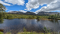 Reiste opp kvelden før...og med fare for å gjøre Rendøler og Østerdøler ssure så må jeg si at å kjøre mot Rena og videre oppover Rendalen er like kjedelig som å "se maling tørke". Det er nå min personlige mening. Ikke spennende på Toten heller, men mer variert...Bare skog og øde strekninger...sammen hele veien. Men så,- etter å ha tatt av hovedveien og opp fjellveien mot Fiskevollen skjedde det noe. Litt flatt her oppe, men så plutselig reiser dette store fjellmassivet seg opp på denne "fjellsletta" omgitt av flate områder med myrer , reinmose og vann. For et fjellmassiv Sølen er!