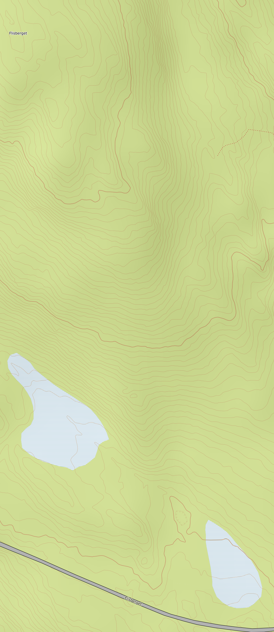 Etter å ha besøkt Smalberget og Hemberget kjørte jeg ned igjen til Ariakoia, tok til høyre her og fortsatte ytterligere en drøy mil innover skogbilveien. Jeg fant en liten parkeringslomme rett sør for Flisberget og var klar for tur igjen. Jeg fulgte noen tråkk oppover og etter kort stund sto jeg på toppen. Dette var et overraskende lett terreng å ta seg frem i. Ingen markering på toppen, men en liten kolle stikker seg litt over resten av terrenget. Null utsikt.